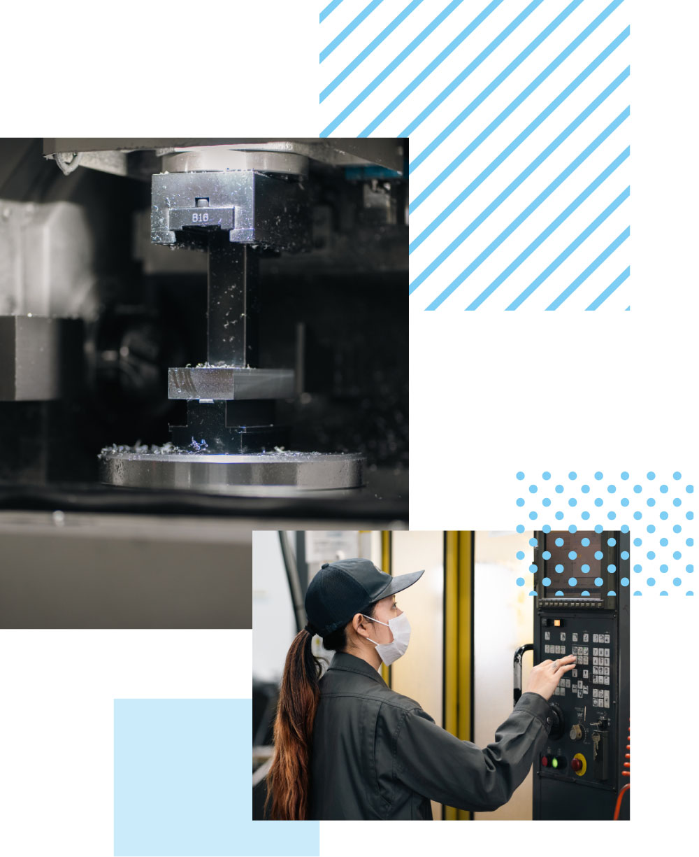 10個以下の多品種少ロットの部品を社内で一貫製作を行っているため、 短納期で高品質な製品のご提供が可能です。