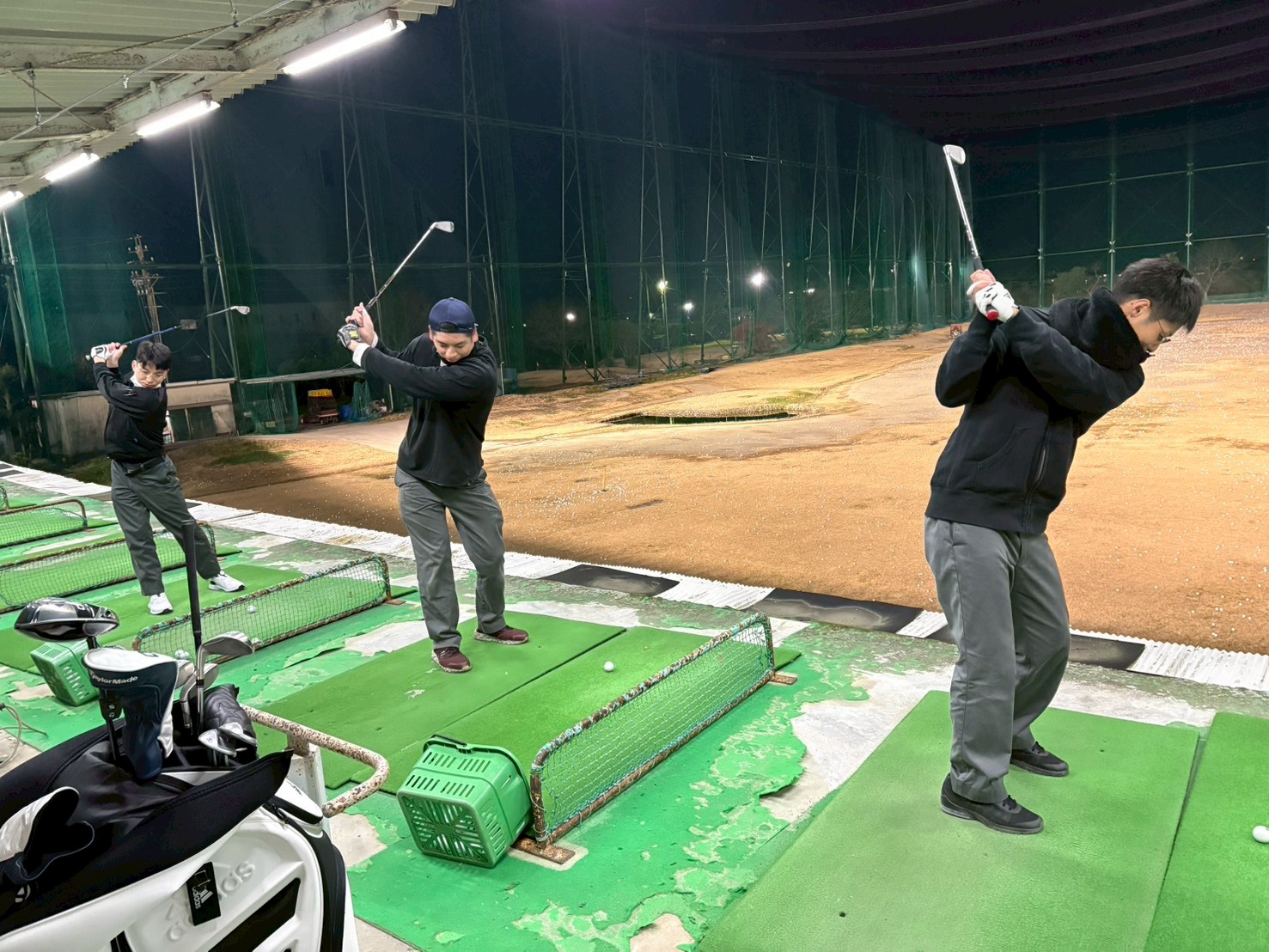 初心者ばかりなので、今は月に1~2回仕事帰りに打ちぱなっしで練習をしています。
